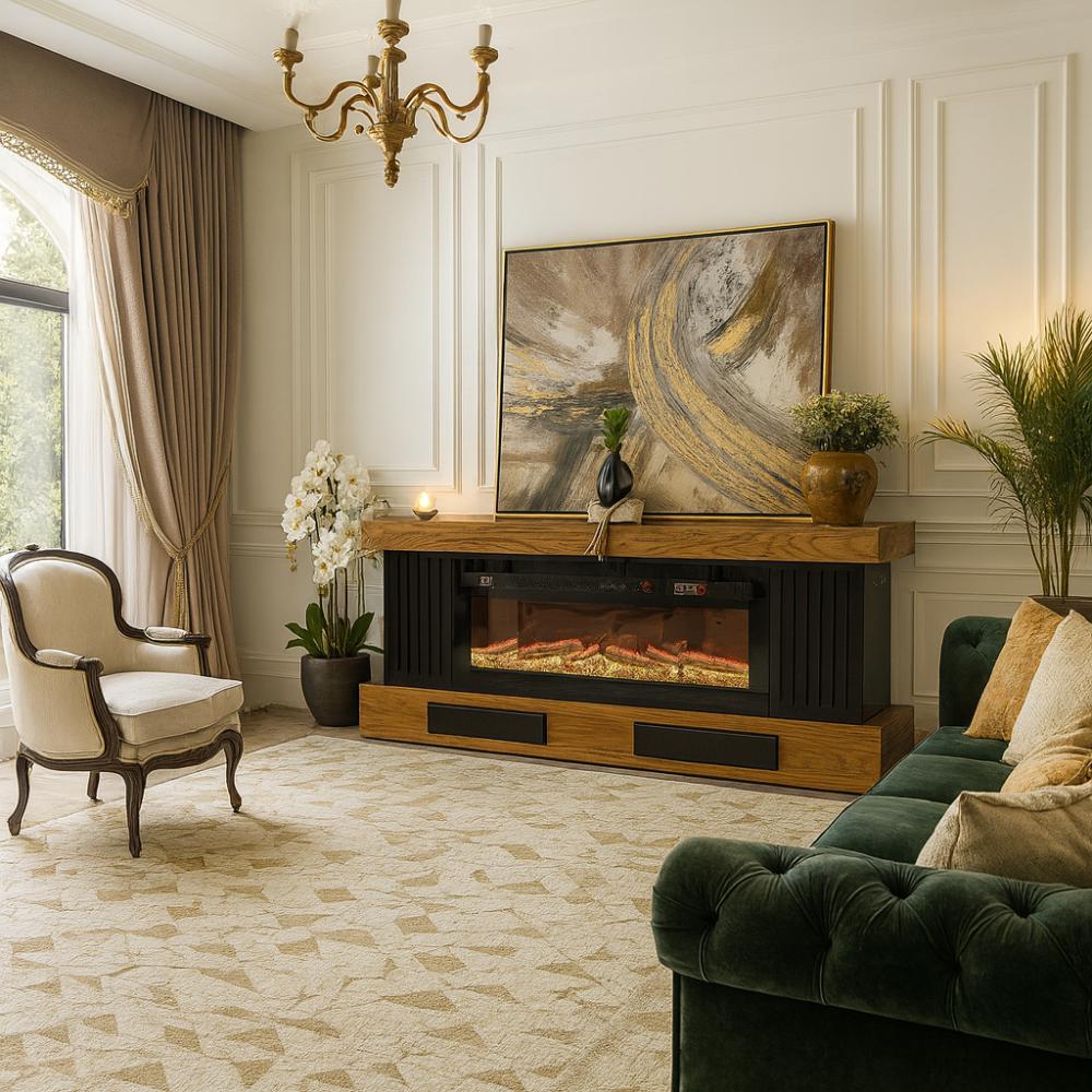 استمتع بألسنة اللهب المتوهجة للمدفأة الواقعية، والتي تضمن توفير ساعات من الأجواء والراحة.