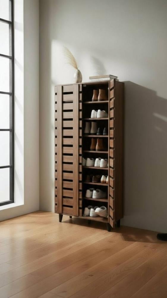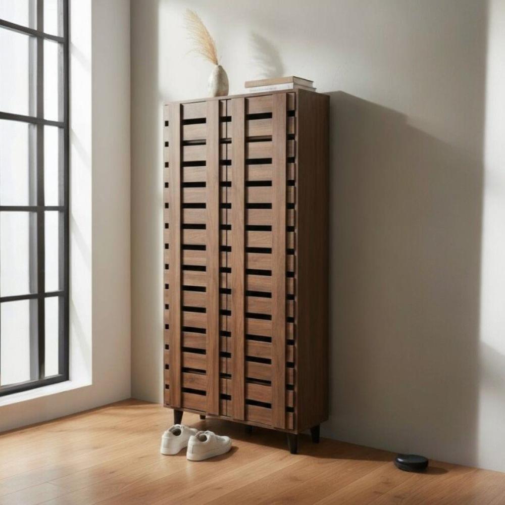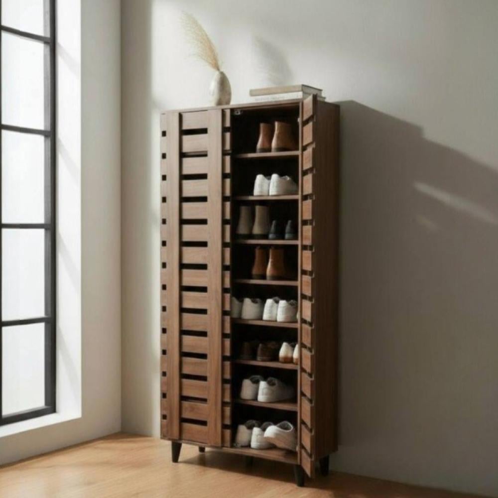 دولاب أحذية خشب بني 2 أبواب - بتصميم فاخر وأنيق