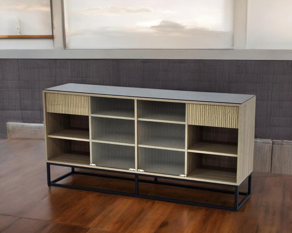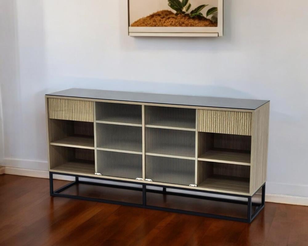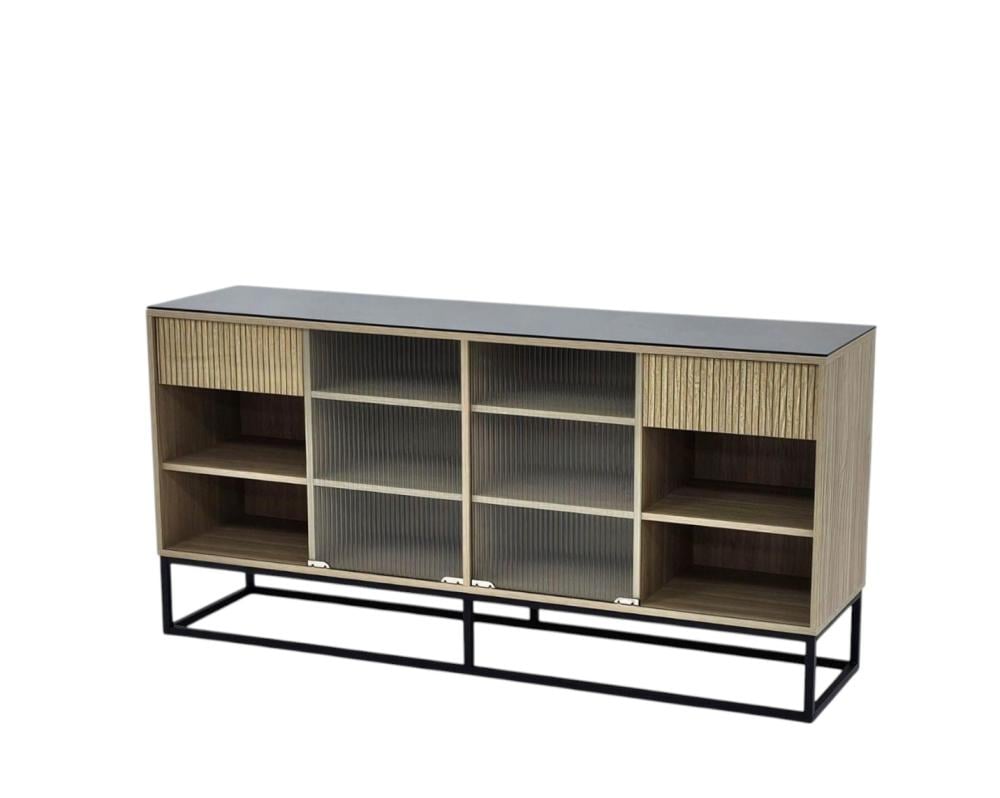 دولاب بوفية خشب لون بيج بسطح زجاج