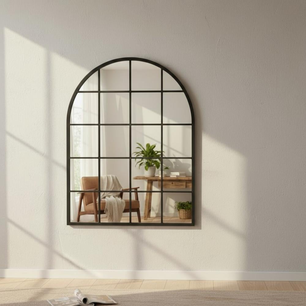 ديكور مرايا أنيقة بتصميم مقسّم بإطار أسود فاخر تضيف لمسة عصرية لأي مساحة داخلية. تأتي بمقاس 95×76 سم، وهو حجم مثالي للجدران الصغيرة أو لتجميع عدة مرايا معًا بتصميم جداري متناسق. تصميمها المقسّم يعكس الضوء بشكل جميل ويمنح الإحساس بالاتساع والفخامة في المكان.