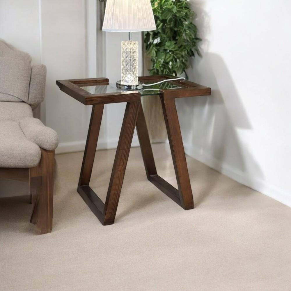 زاوية خشب سنديان زجاج شفاف :