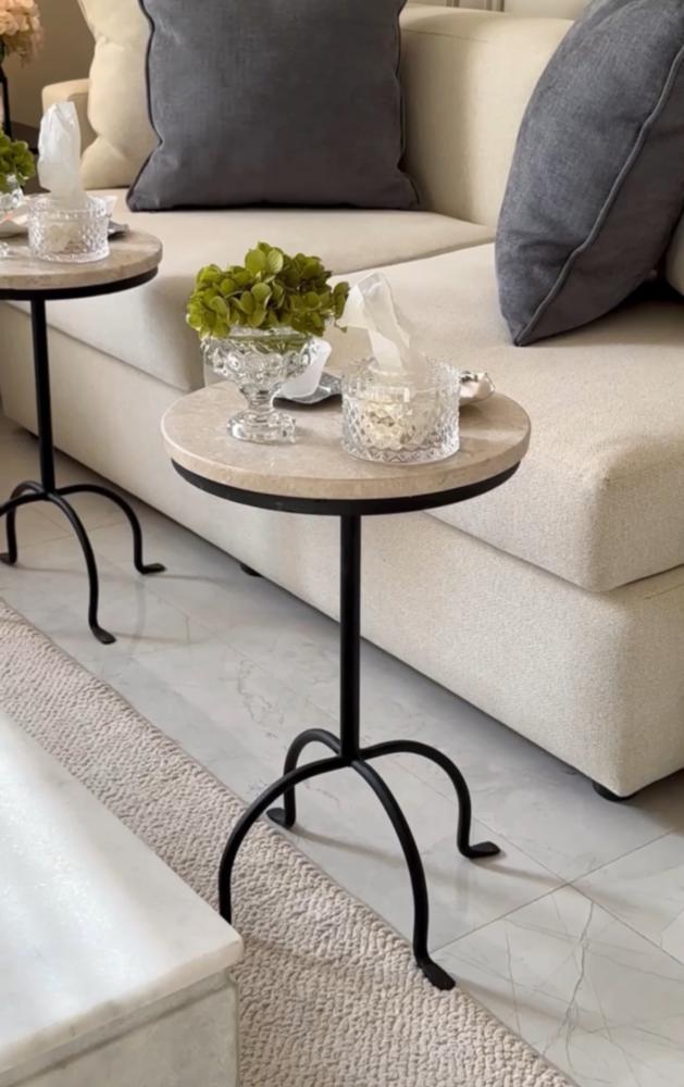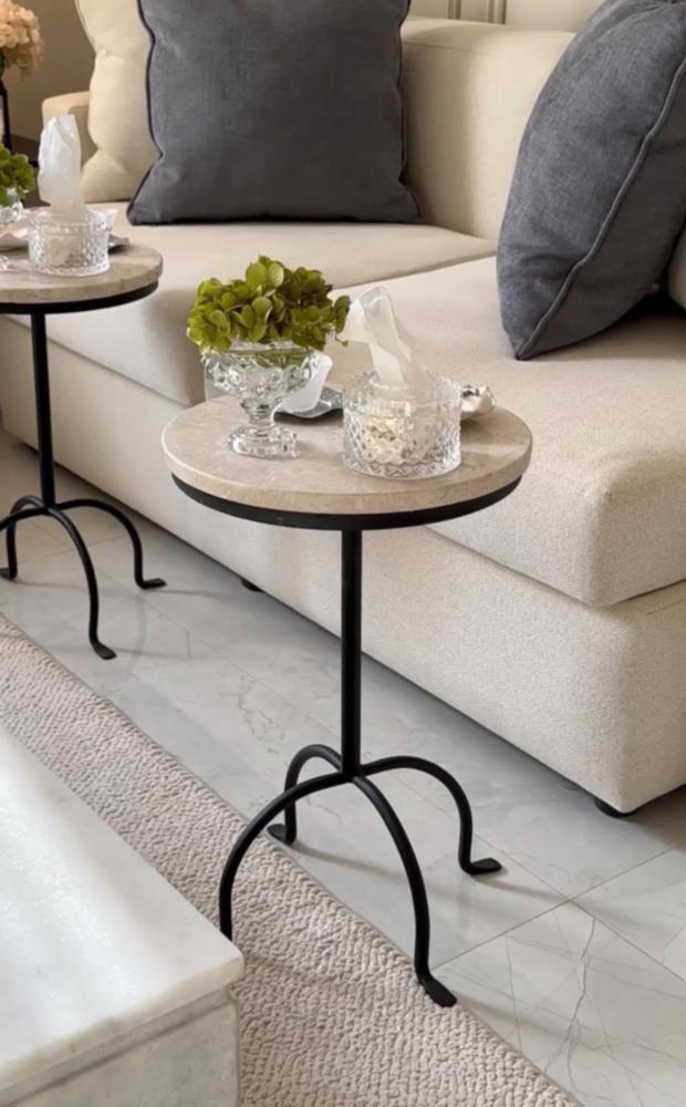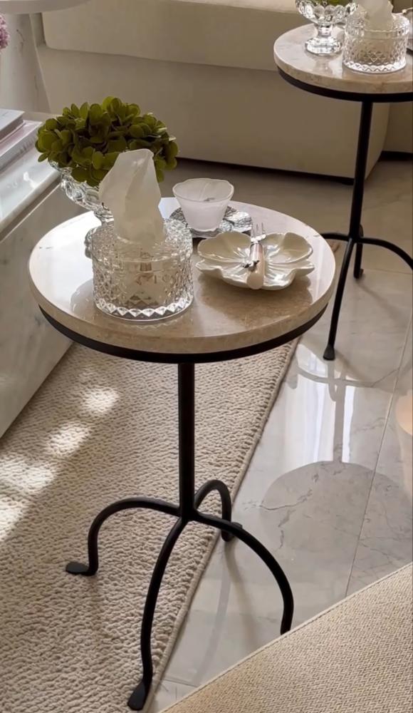 طاولة خدمة قاعدة حديد أسود سطح رخام طبيعي - بتصميم أنيق وعملي :