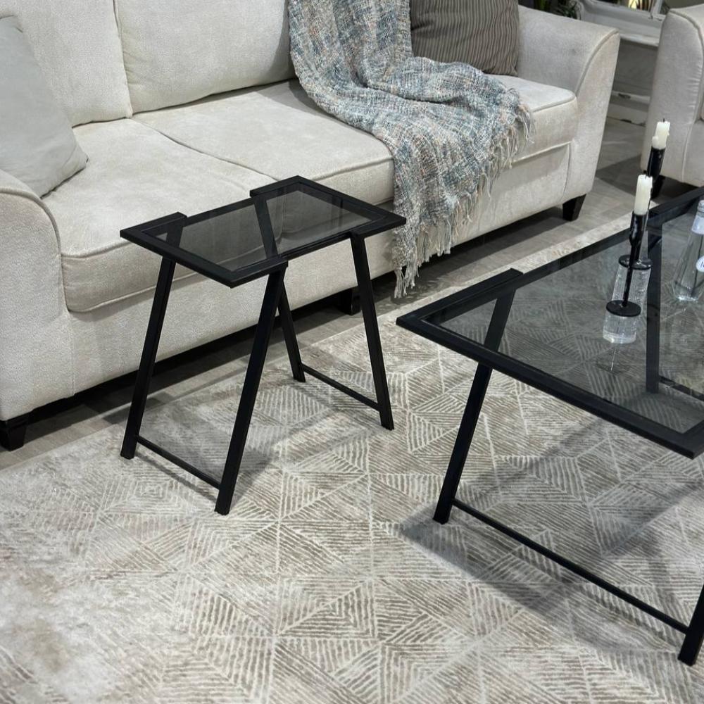 طقم طاولات أسود أنيق بسطح زجاجي أسود شفاف ولمسات معدنية فاخرة (TL)