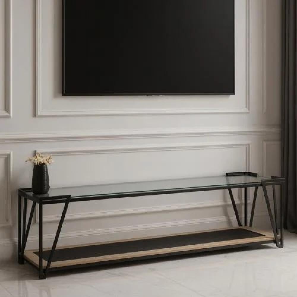 طاولة بلازما فاخرة بتصميم عصري وأنيق، تأتي بدورين لتجمع بين الجمال العملي والفخامة. مصنوعة من الخشب الفاخر الذي يمنحها مظهراً دافئاً وطابعاً كلاسيكياً راقياً، مع سطح علوي من الزجاج الشفاف يضفي لمسة من الفخامة والرقي ويبرز تفاصيل التصميم بدقة.
