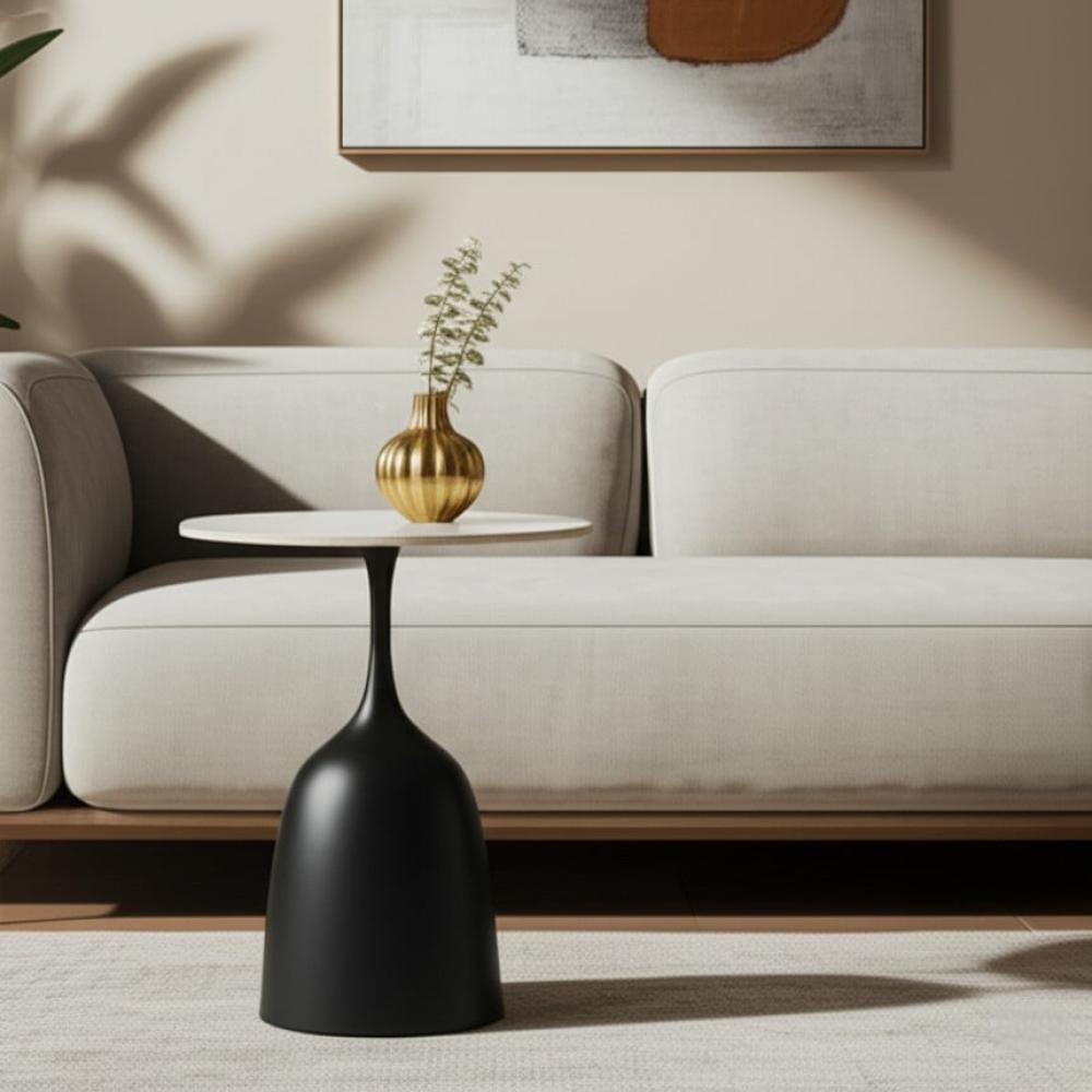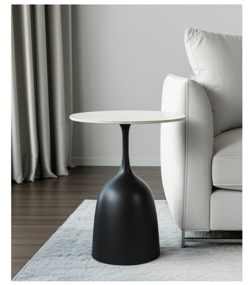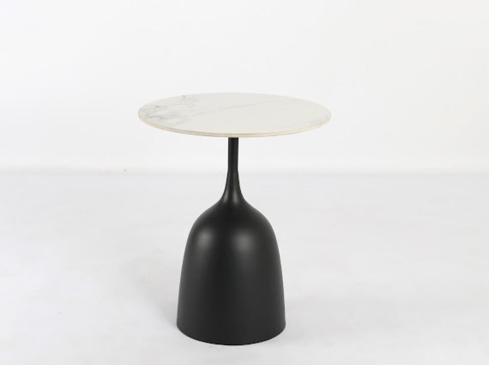 طاولة خدمة أنيقة بقاعدة معدنية سوداء متينة وسطح علوي من السيراميك عالي الجودة يمنحها لمسة عصرية وفاخرة.