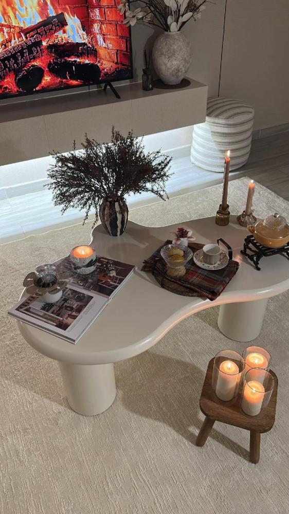- طاولة الضيافة الخشبية البيضاء بتصميم مودرن من كافيني تتميز بالبساطة والأناقة في نفس الوقت، وهي إضافة رائعة لأي غرفة معيشة أو صالون عصري. إليك بعض المميزات والخصائص التي تميز هذه الطاولة: