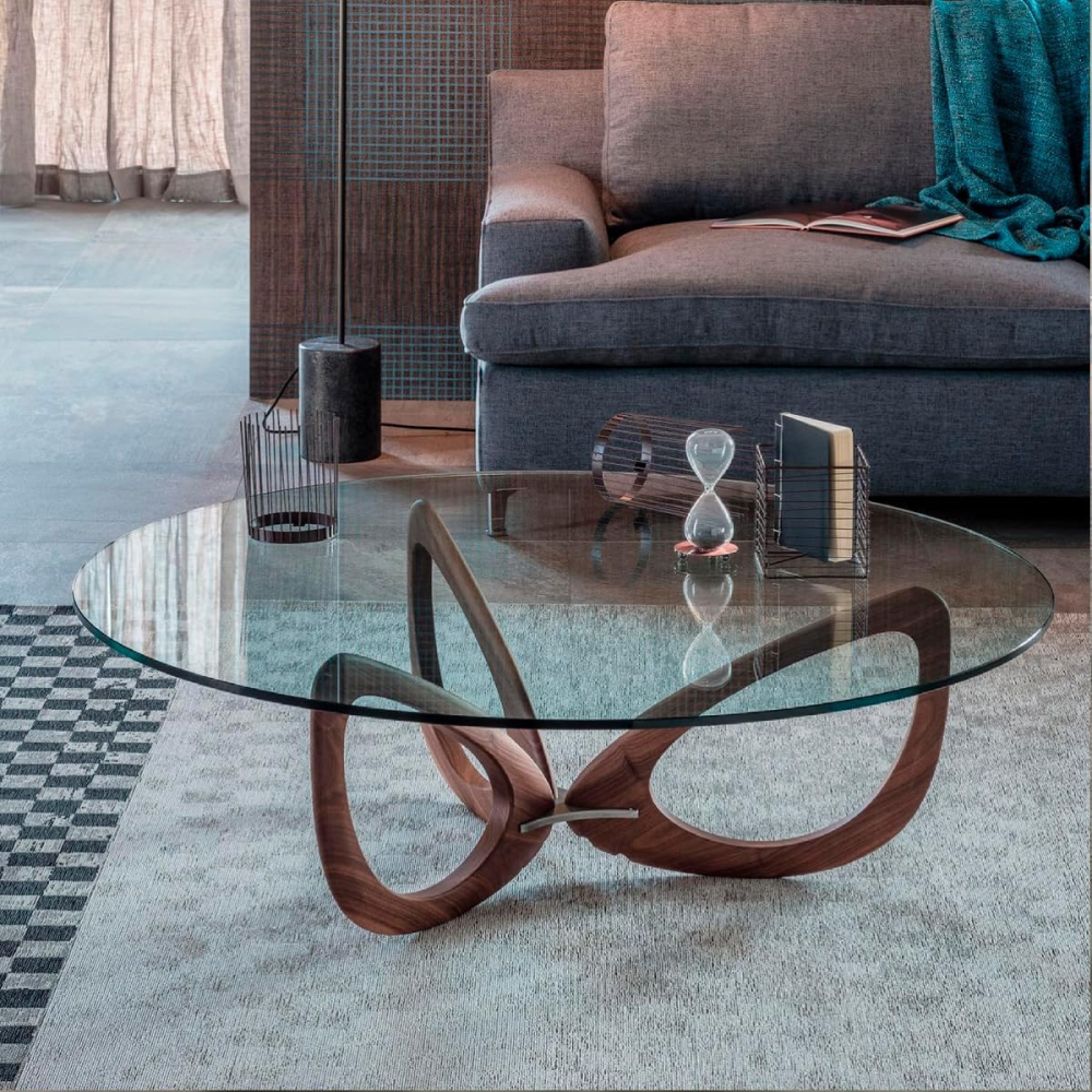 طاولة ضيافة خشب بني سطح زجاج شفاف - بتصميم أنيق وفاخر :