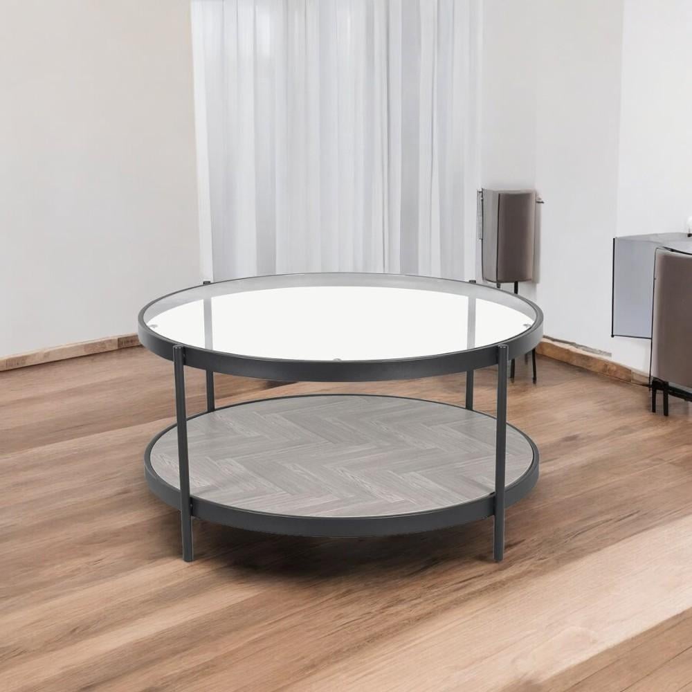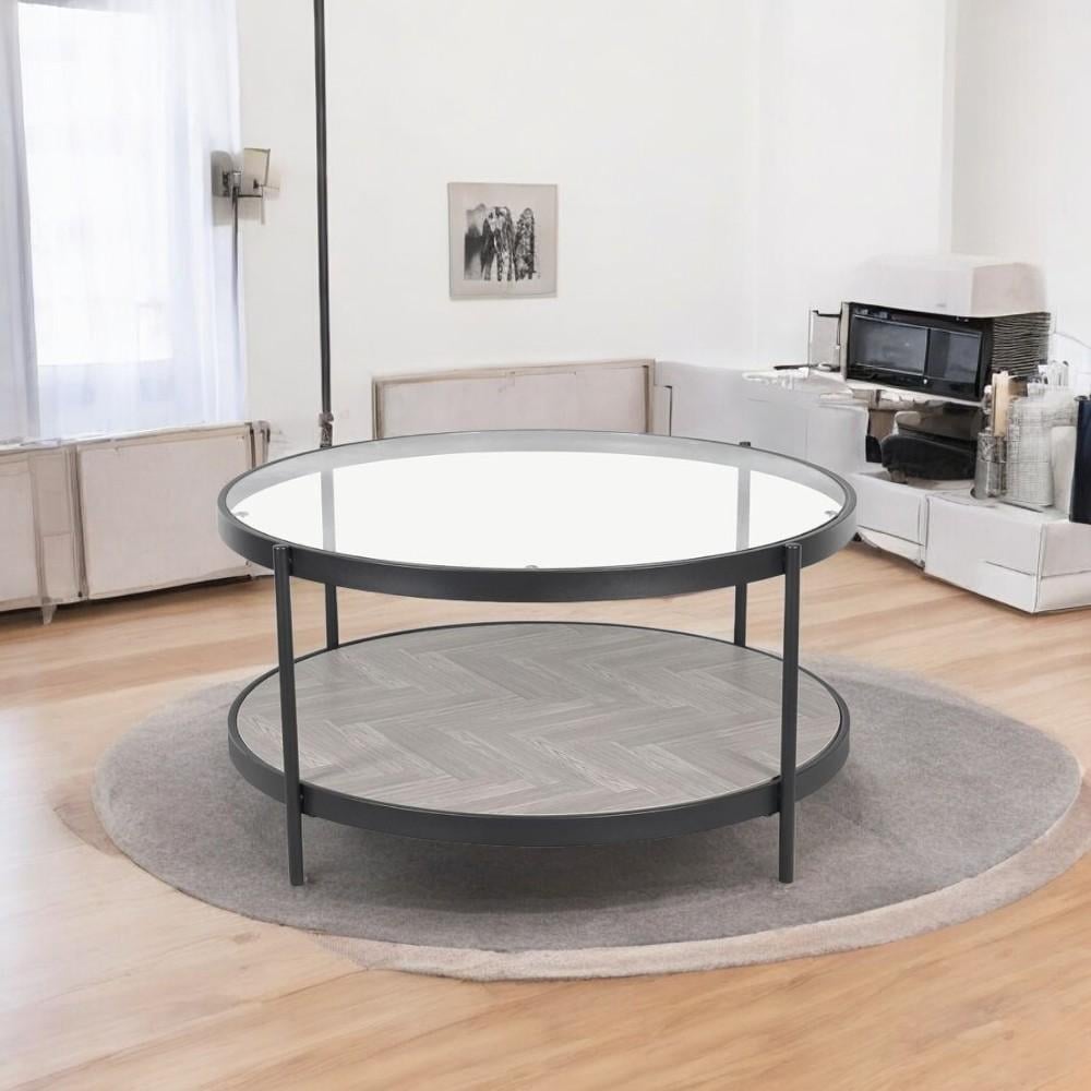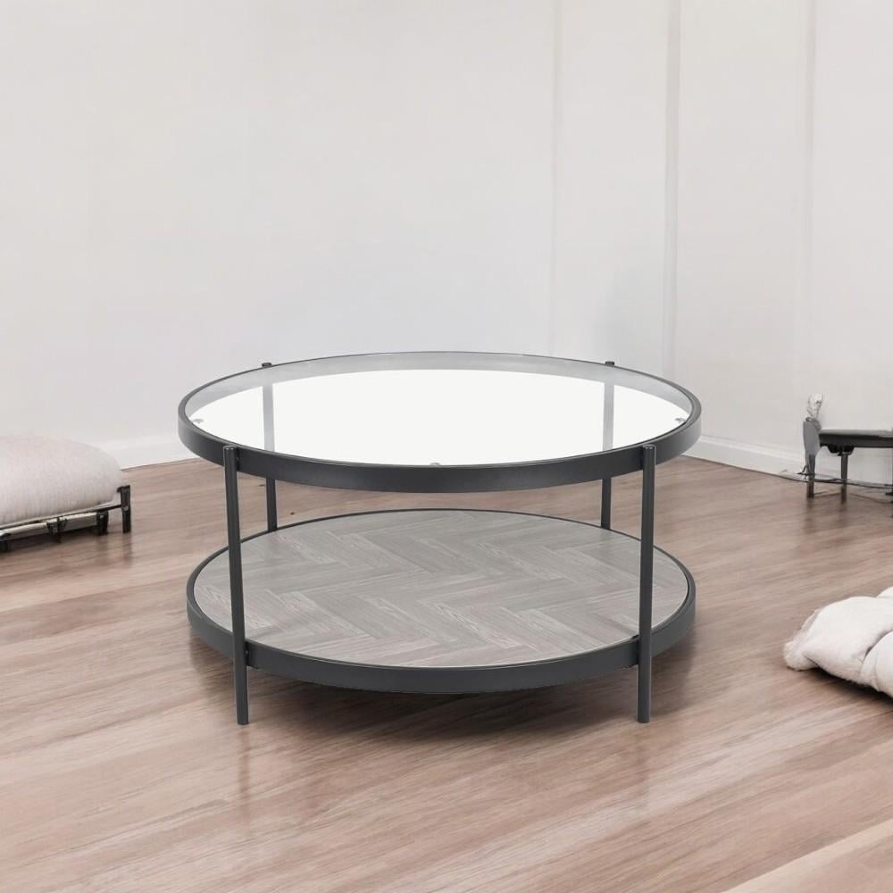 طاولة ضيافة خشب رمادي مع زجاج شفاف مفرد