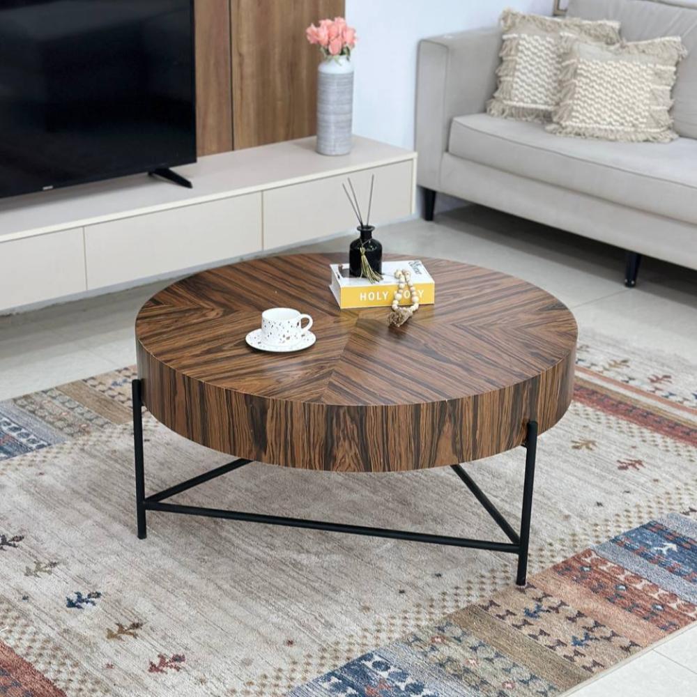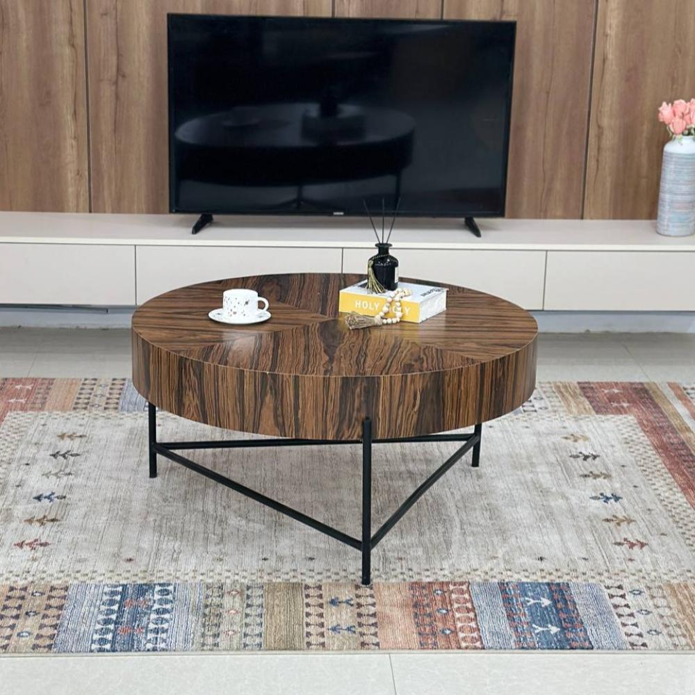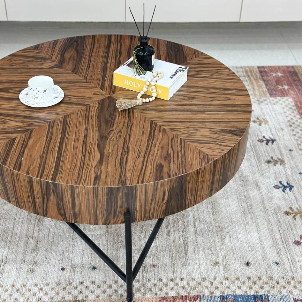 طاولة ضيافة دائري خشب بني قاعدة حديد :