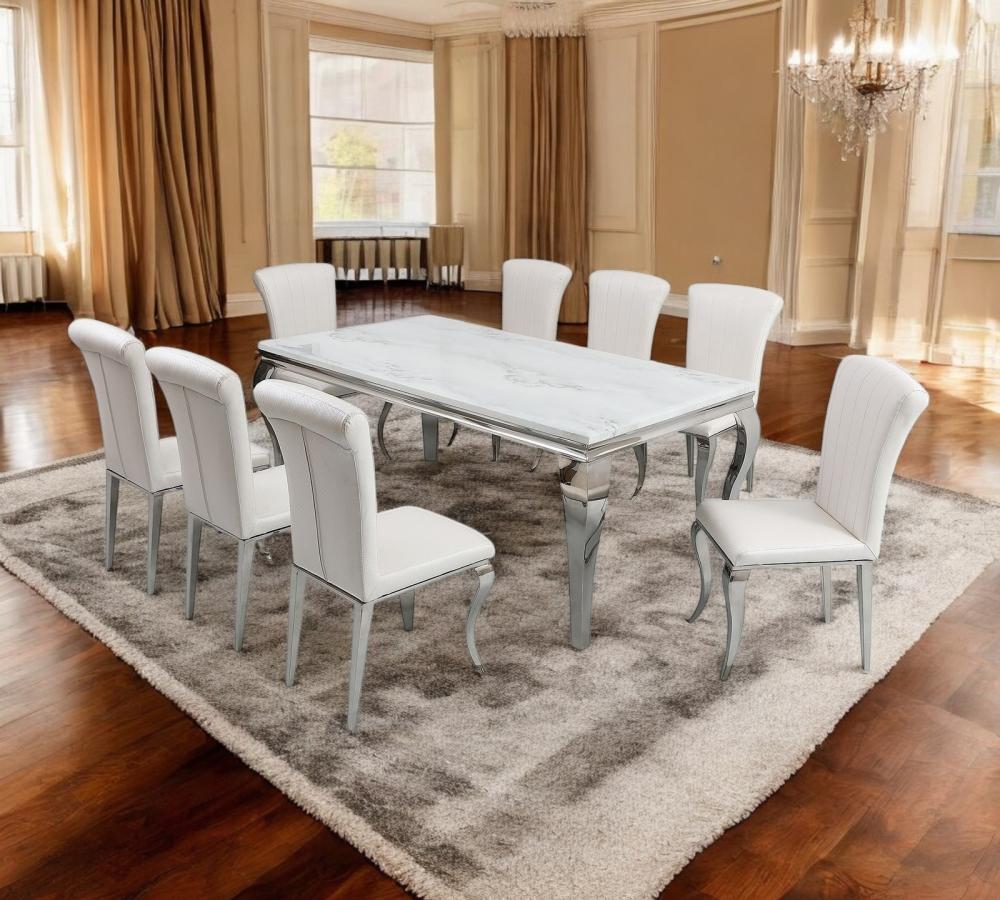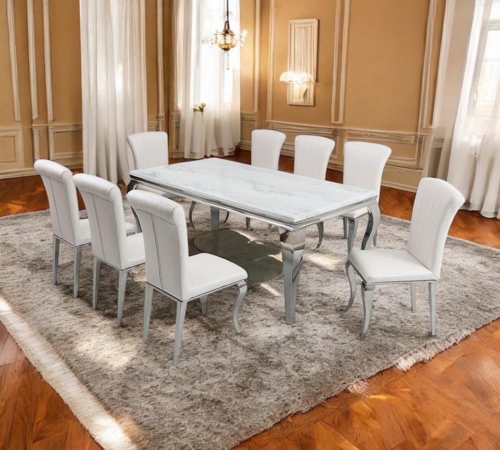 طاولة طعام استيل رخام 8كرسي لون فضي