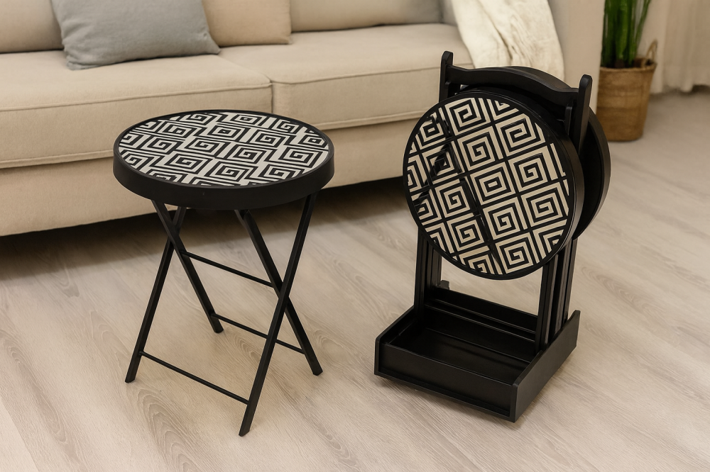 - طاولات خدمة متداخلة تصميم عصري وأنيق يضفي لمسة فنية راقية على أي مكان توضع فيه.
