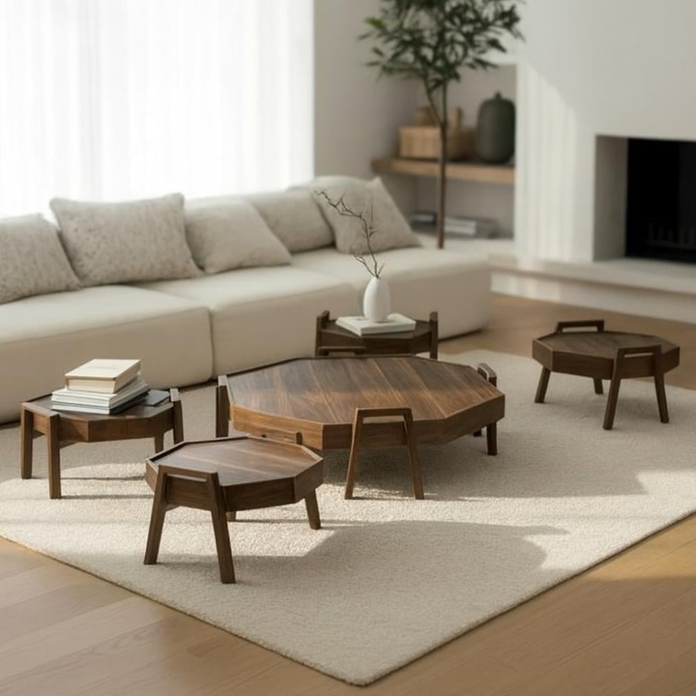 طقم طاولات ضيافة تركي أرضي يجمع بين الفخامة التركية والأصالة العصرية، مصنوع من خشب عالي الجودة بلون بني دافئ يمنح المكان لمسة من الرقي والدفء. تصميمه الأرضي المميز مستوحى من اللمسات التركية الفاخرة، ليمنح المجلس أو الصالة حضورًا أنيقًا ومريحًا في آنٍ واحد.