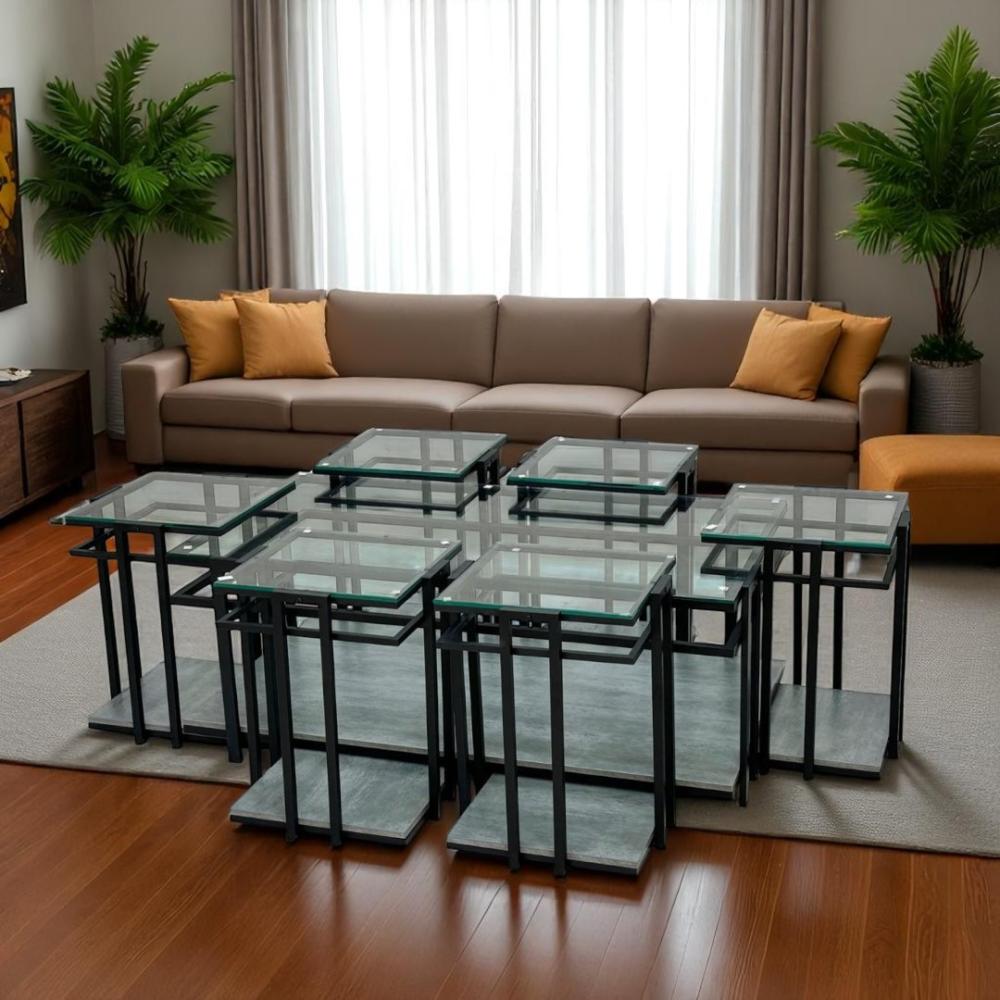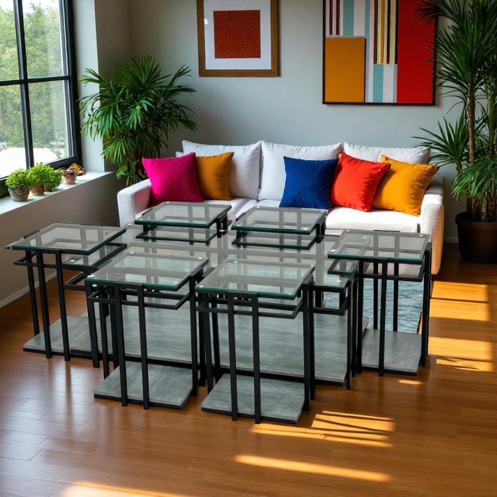 اجعل كل زاوية في منزلك تنبض بالأناقة مع طقم طاولات خشب ذات السطح الزجاجي الشفاف تصميم عصري ومتين يوفر لك مرونة استخدام رائعة بفضل 6 طاولات خدمة يمكن توزيعها بكل سهولة إضافة مثالية للمساحات العصرية التي تعكس ذوقك الرفيع.
