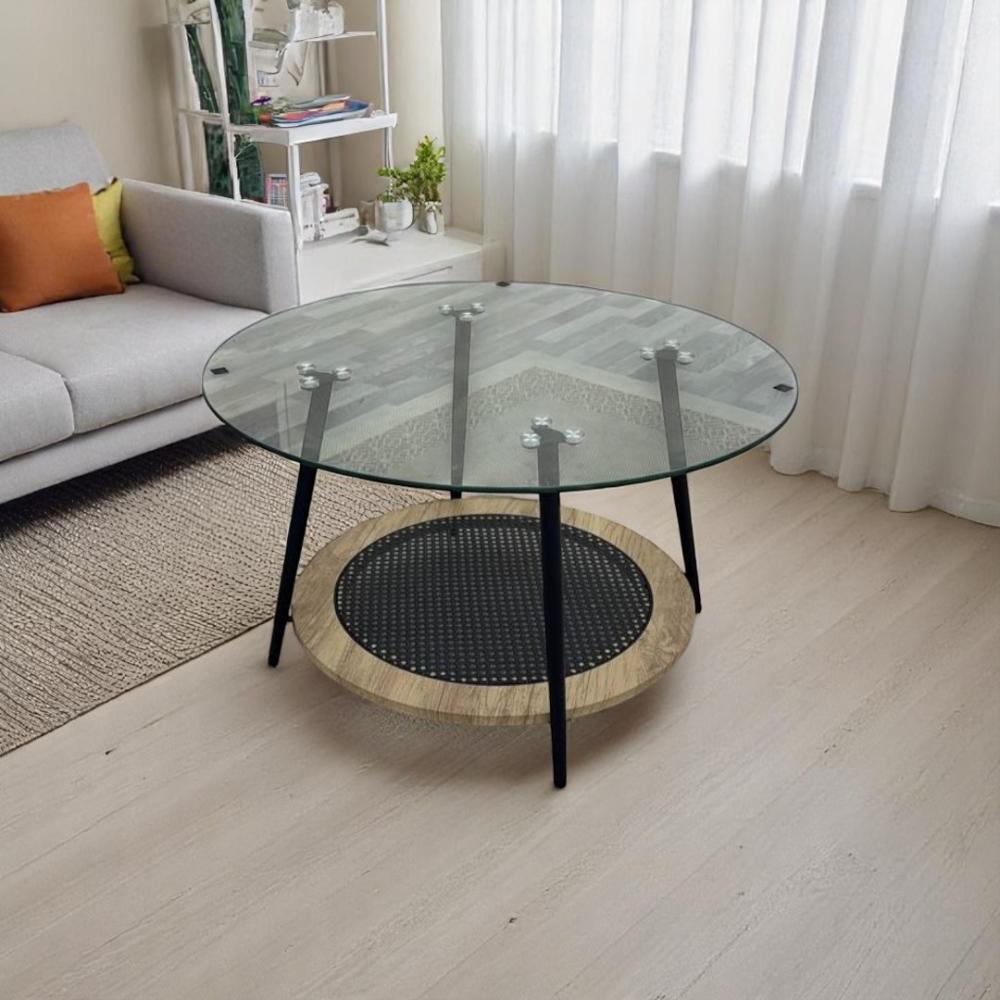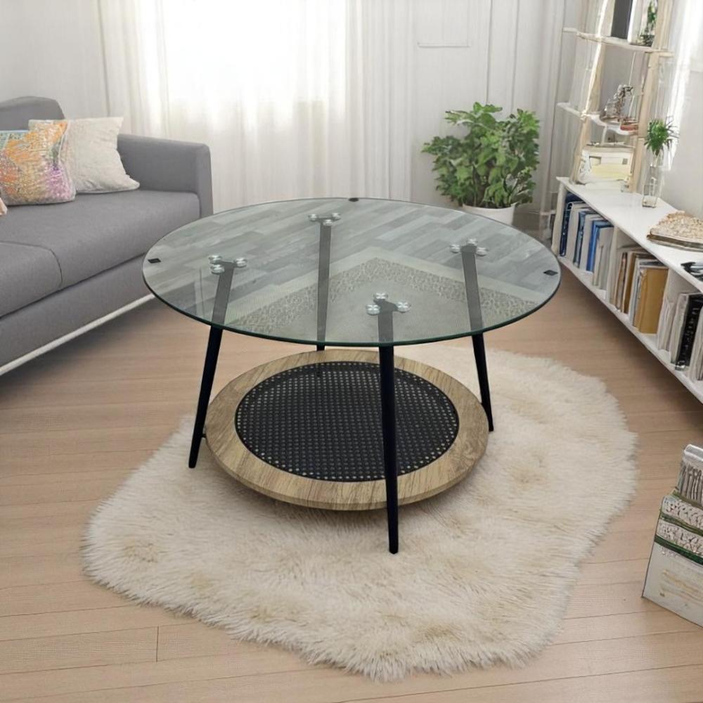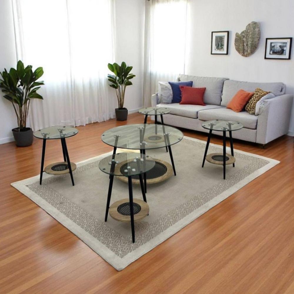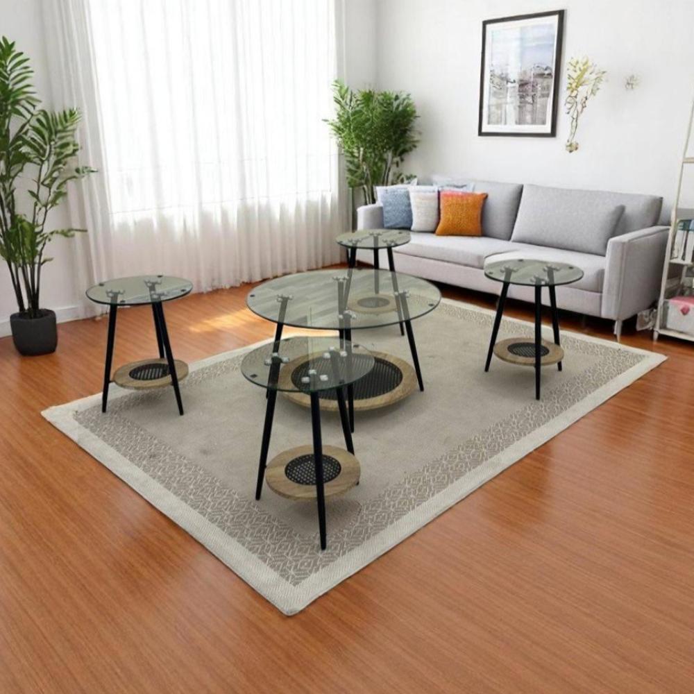 طقم طاولات ضيافة دورين خشب بيج سطح زجاج شفاف 5 قطع