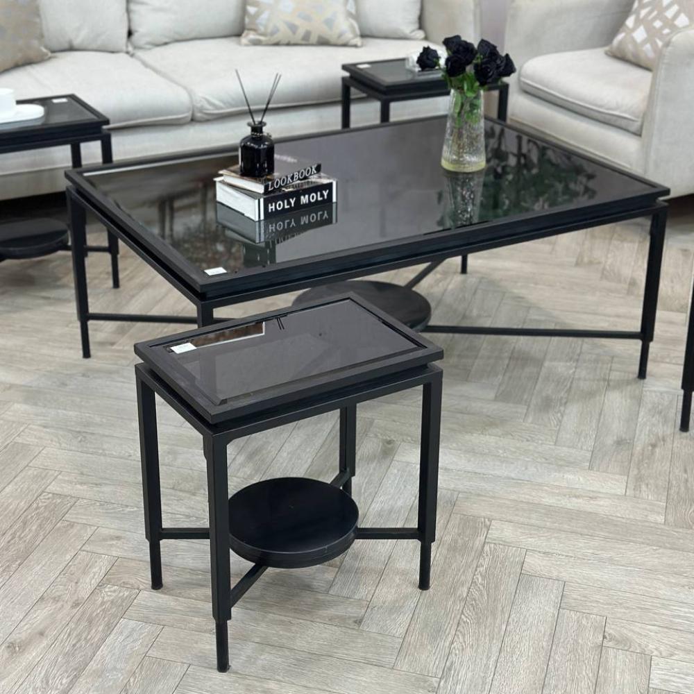 طقم طاولات ضيافة دورين سطح زجاج أسود :