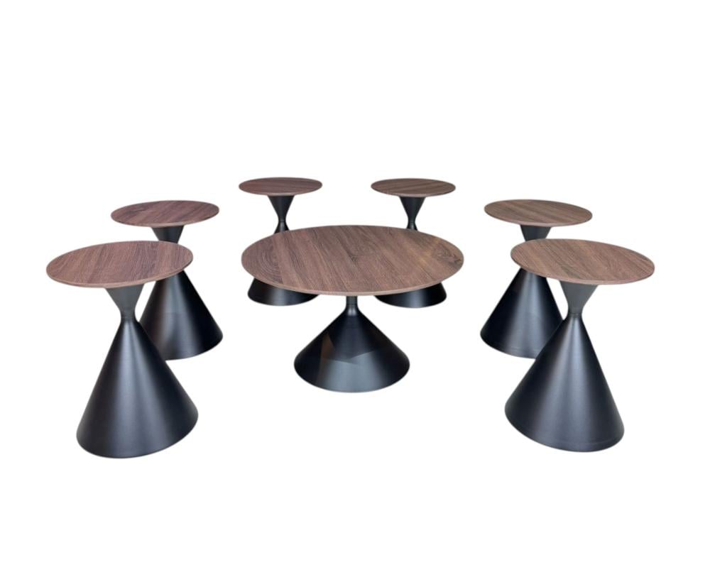 طقم طاولات ضيافة قاعدة سوداء سطح خشب بني مع 6 طاولات خدمة - بتصميم أنيق وفاخر