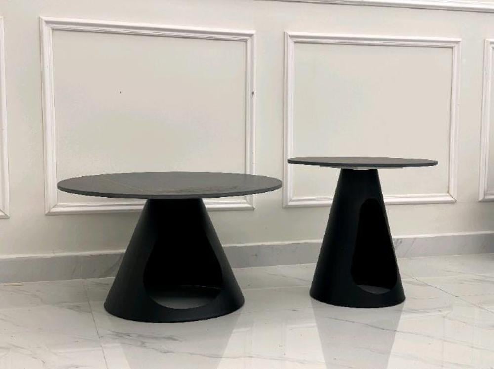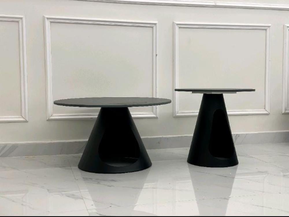 طقم طاولتين أنيق مصمم بلون أسود فاخر مع سطح رخامي، يضيف لمسة من الفخامة والرقي إلى ديكور المنزل أو المكتب.