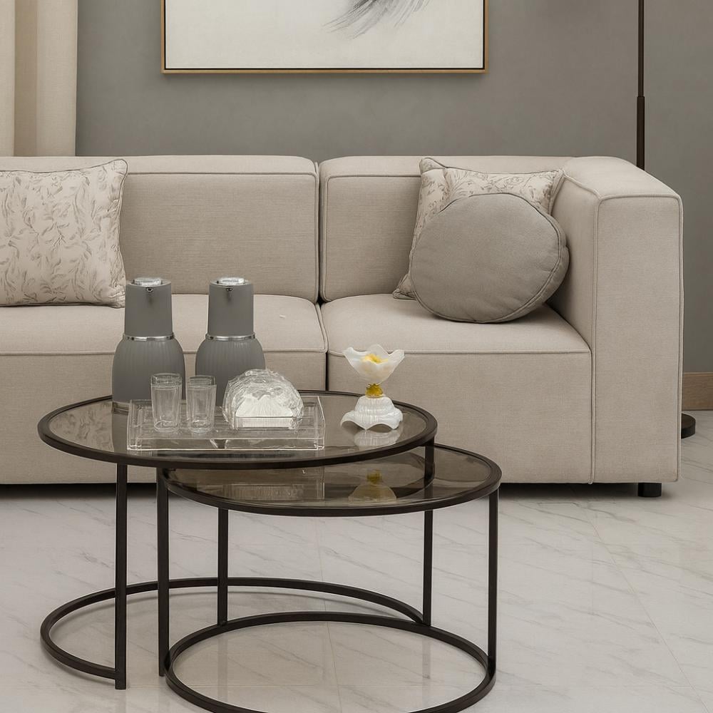 طقم طاولتين متداخلة بني سطح زجاج بني شفاف - بتصميم أنيق وفاخر :