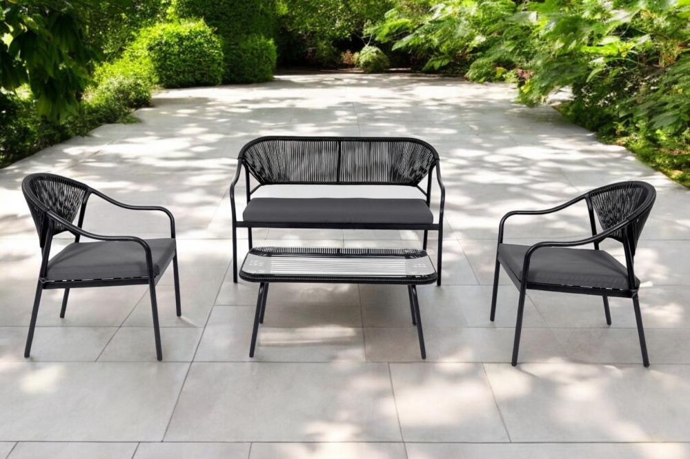 طقم كنب لون اسود 4 اشخاص