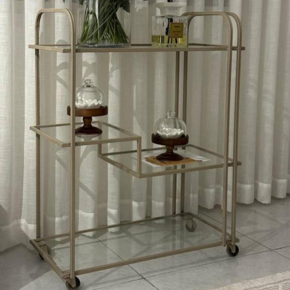 • عربة تقديم ضيافة تتميز بتصميم فني يتماشى مع جميع أنواع الديكور الداخلي، مما يجعلها إضافة رائعة لمختلف الأثاث.