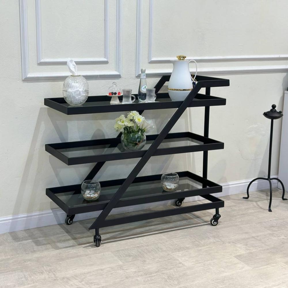 #عربية تقديم 3 دور حديد لون اسود سطح زجاج اسود شفاف
