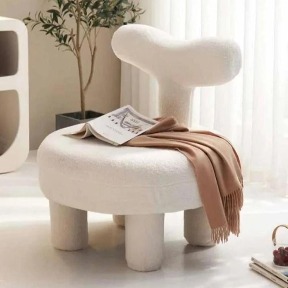 كرسي بتصميم مودرن أنيق، مكسو بقماش بوكلية أبيض ناعم وفاخر. يجمع بين البساطة والرقي، ويضفي لمسة دافئة ومعاصرة على أي مساحة.