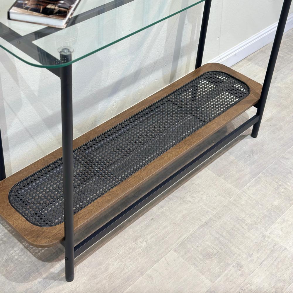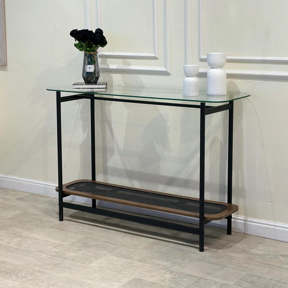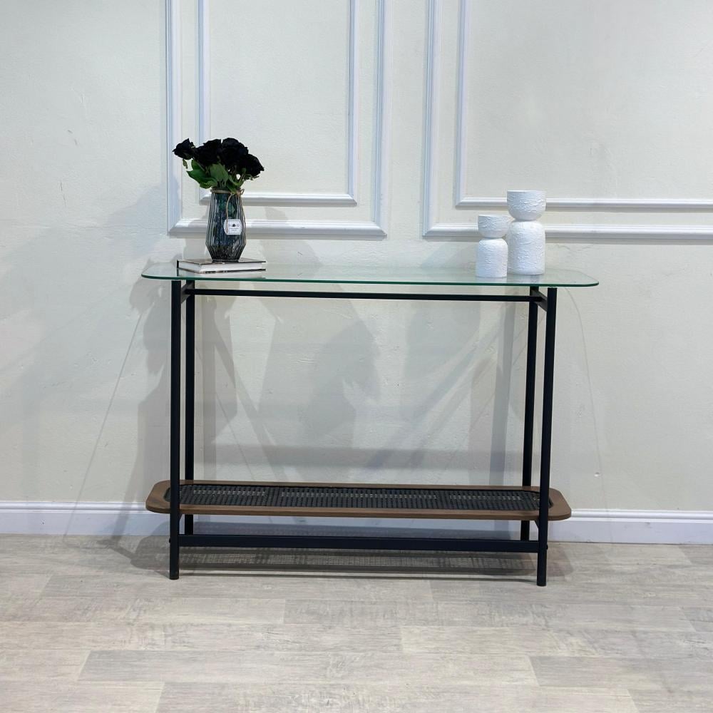 مدخل خشب بني دورين سطح زجاج شفاف :