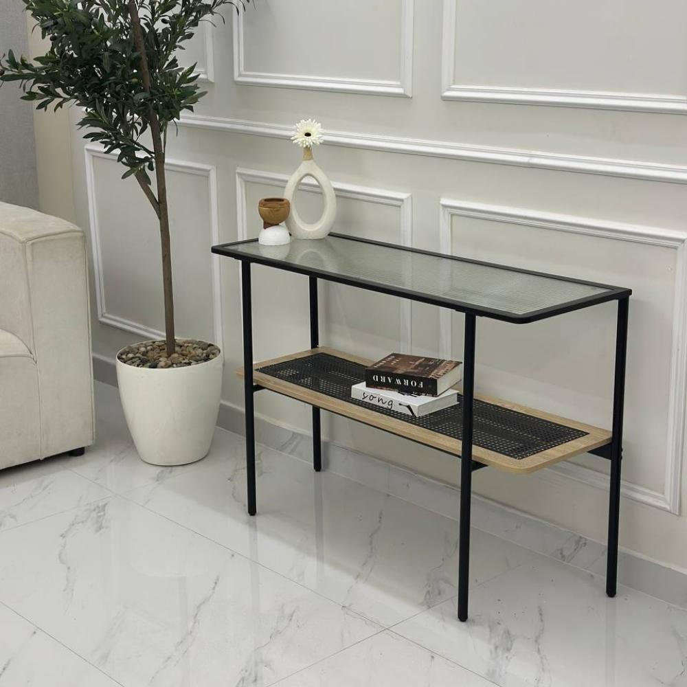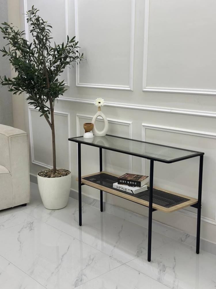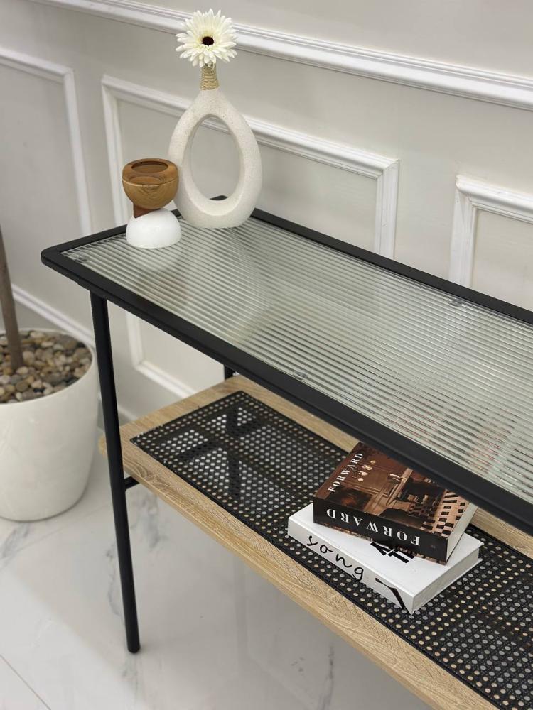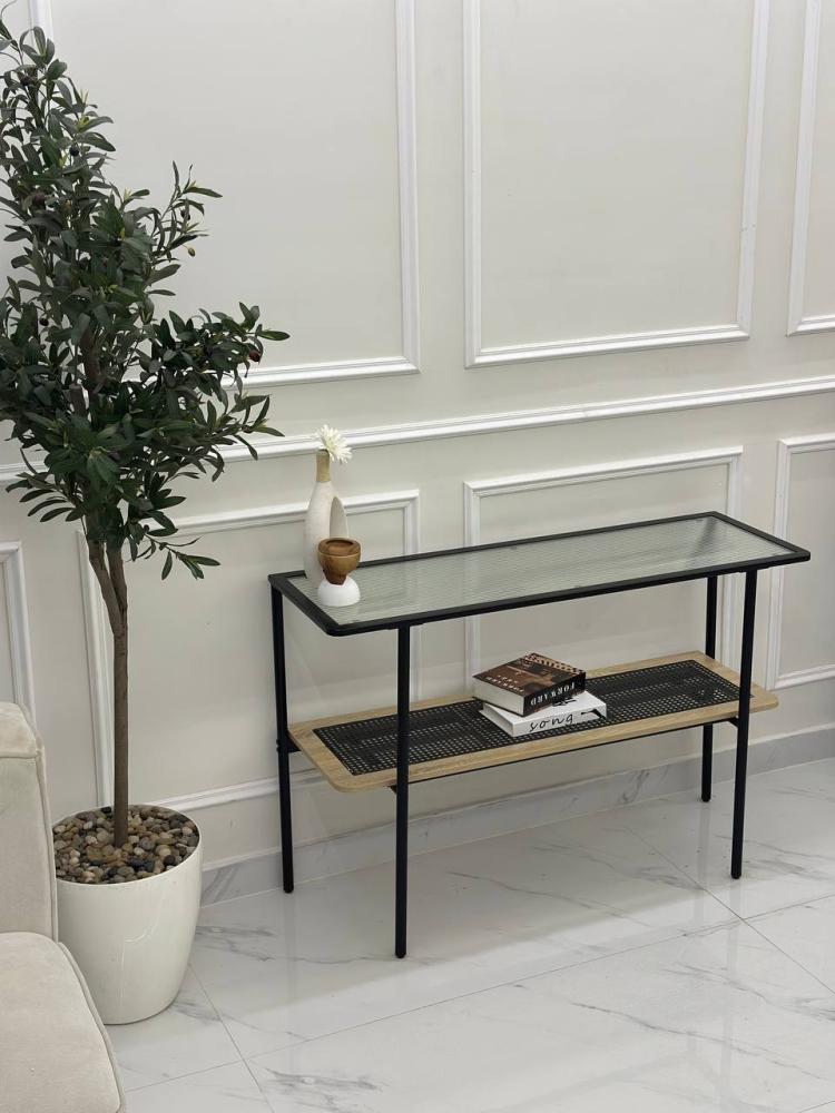 • تصميم فاخر يجمع بين الخشب الطبيعي والزجاج الشفاف لمظهر أنيق ومتوازن.