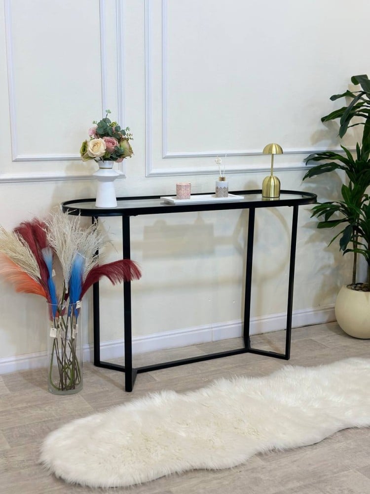 مدخل - كونسول بلون أسود وسطح زجاجي