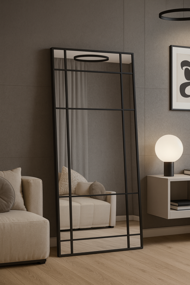 مرايا ديكور مقسمة بتصميم عصري أنيق، تأتي بإطار باللون الأسود الفاخر لتضفي لمسة من الفخامة والرقي على أي مساحة. حجمها الكبير (180 سم الارتفاع × 90 سم عرض) يجعلها قطعة مميزة في المكان، تعكس الإضاءة وتزيد من الإحساس بالاتساع والرفاهية.