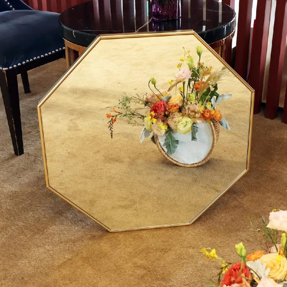 وصف مرايا سداسي إطار ذهبي: مرايا سداسي إطار ذهبي هي نوع من المرايا التي تتميز بإطار سداسي الشكل ذو لون ذهبي، مما يمنحها مظهرًا عصريًا وأنيقًا. الإطار الذهبي يضيف لمسة من الفخامة والرفاهية، مما يجعلها قطعة ديكورية جذابة في أي مكان. يمكن أن تكون المرايا سداسية الشكل مثالية للتناسق مع الأثاث والمفروشات الحديثة.